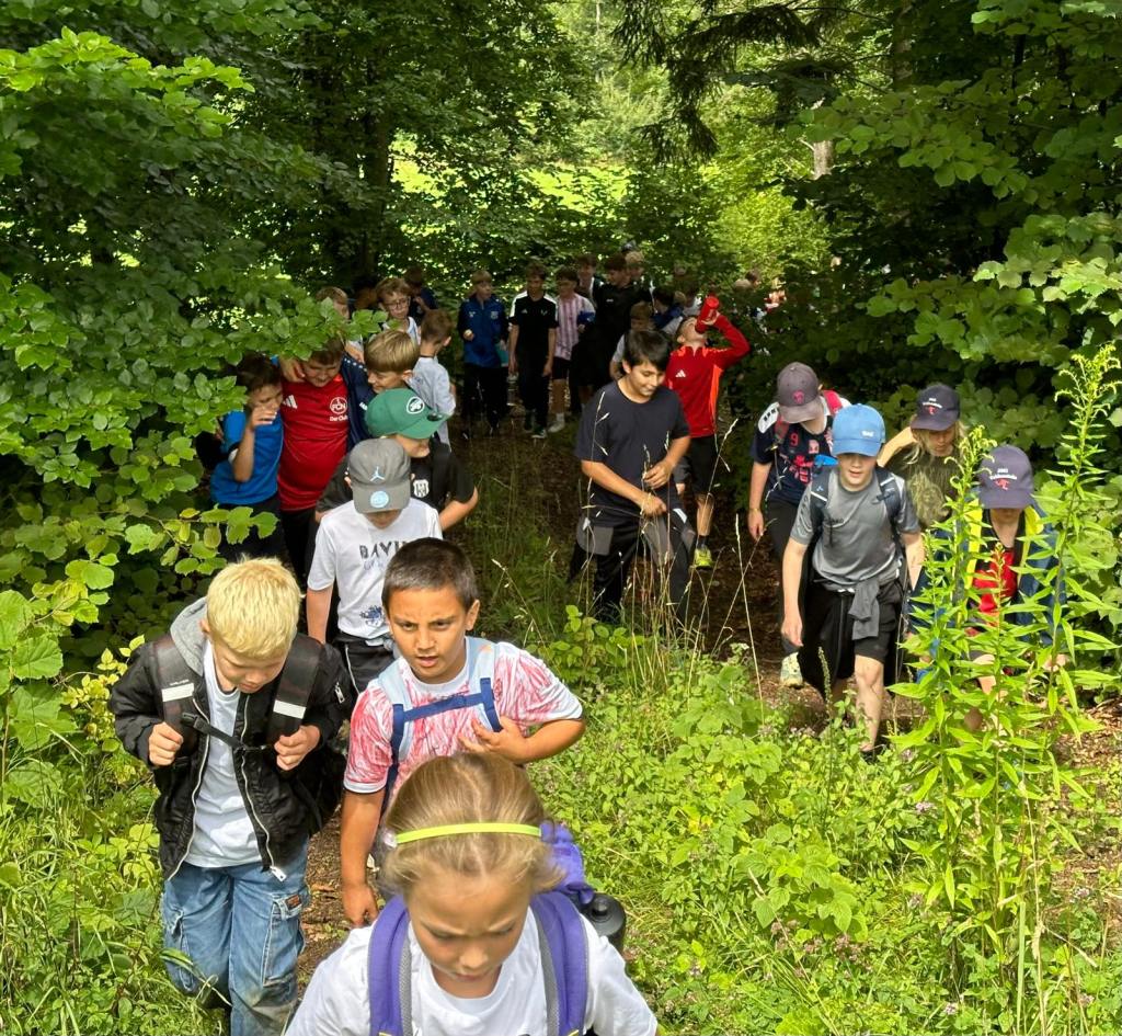 Leider ließ bereits einige Tage davor, die Wetterprognose mit eindeutiger Unwetterwarnung und angekündigten Starkregen, keine andere Entscheidung zu und wir verkürzten die geplanten drei Tage auf einen Tag. Am Samstagmorgen ab 09:00 Uhr fanden sich 65 Kinder in der Waldsportanlage ein und unsere gemeinsame Unternehmung an diesem Tag begann mit Aufwachaktivitätsspielen und einer von sprichwörtlich guter Laune geprägten Begrüßungsrunde.