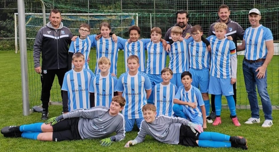 Die Spielerinnen und Spieler der U13D1-Junioren des Jahrganges 2013 der JSG Veldenstein unter der Federführung des SV Plech, bedankten sich bei Heiko Schraudner für einen tollen Trikotsatz. Beim Heimspiel Ende September auf dem Platz des SV Hartenstein gegen die SpVgg Erlangen2, wurde dieser mit einem verdienten Heimsieg eingeweiht. Heiko, der selbst einmal dem runden Leder (‚damals waren die Bälle meist tatsächlich noch aus Leder‘) sehr erfolgreich als B-Jugendspieler in der Bayernliga hinterherjagte, probierte kurzerhand ein Trikot an und beobachtete das nachfolgende Spielgeschehen.