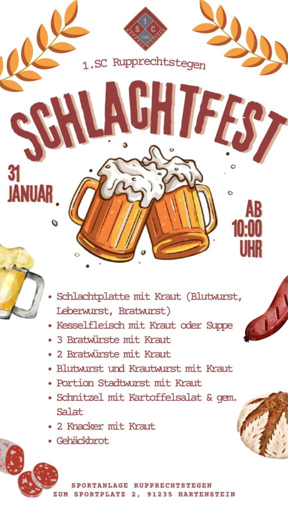 Der SC Rupprechtstegen lädt herzlich zum Schlachtfest ein. 🐖