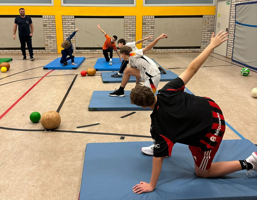 Rahmentrainingsplanes standen Konditions- und Koordinationsaspekte, technisch/taktische Übungsabfolgen, sowie die unterschiedlichsten Spieleröffnungen und der Spielaufbau über die Außenbahnen und das zentrale Mittelfeld