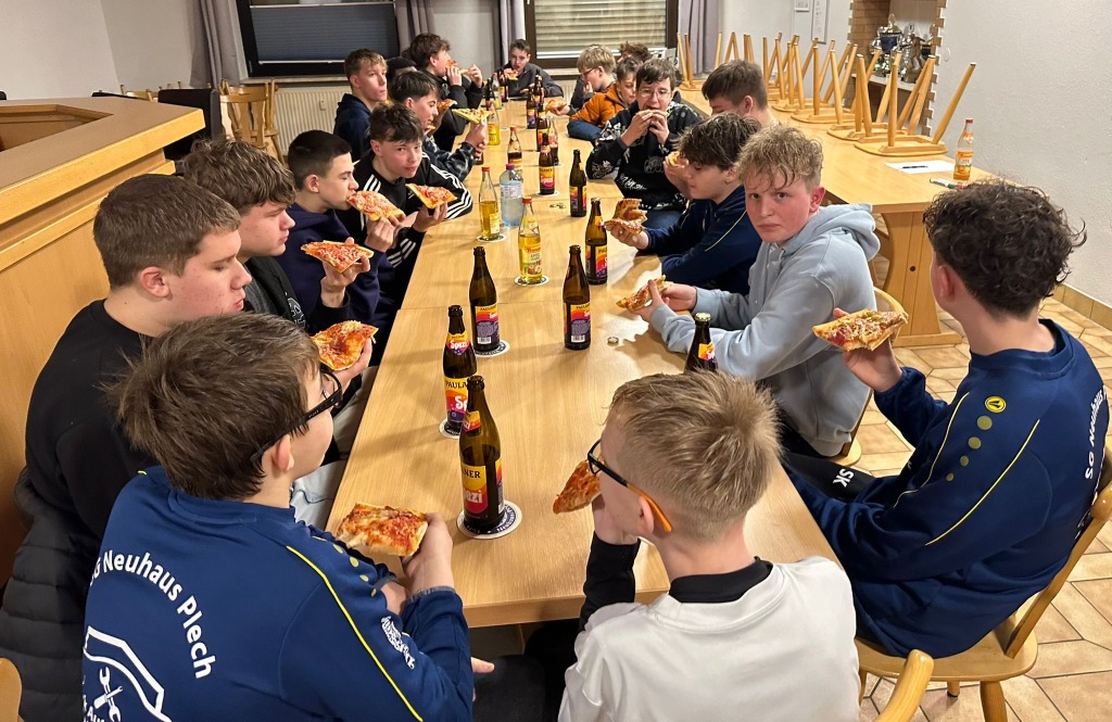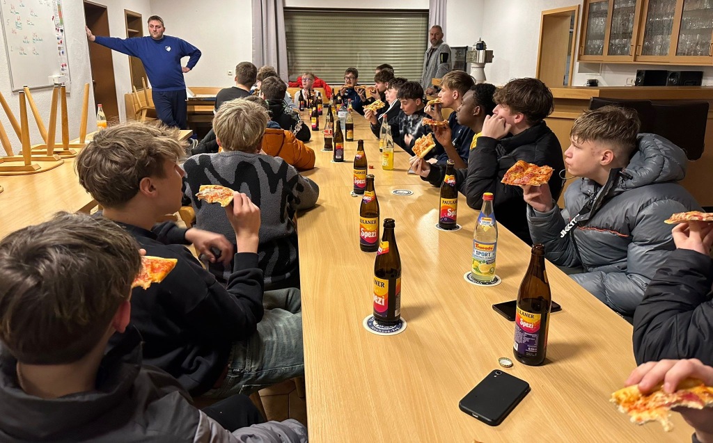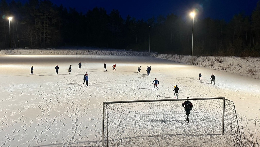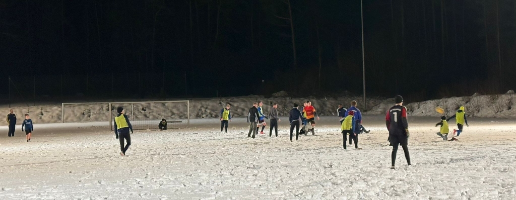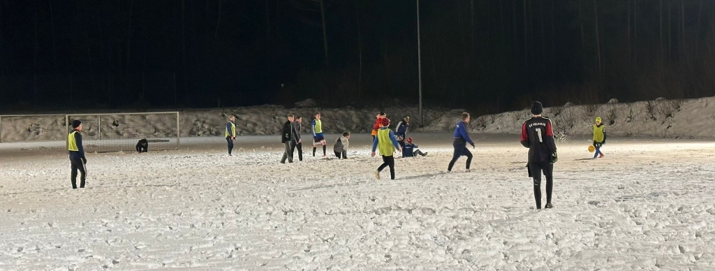 Pünktlich vor dem ersten Testspiel meldete sich leider der Winter mit Schneefall sichtbar in Erinnerung. Spielchen auf dem Schneeboden mit nachfolgender Spielersitzung und gemeinsamen Pizzaessen.