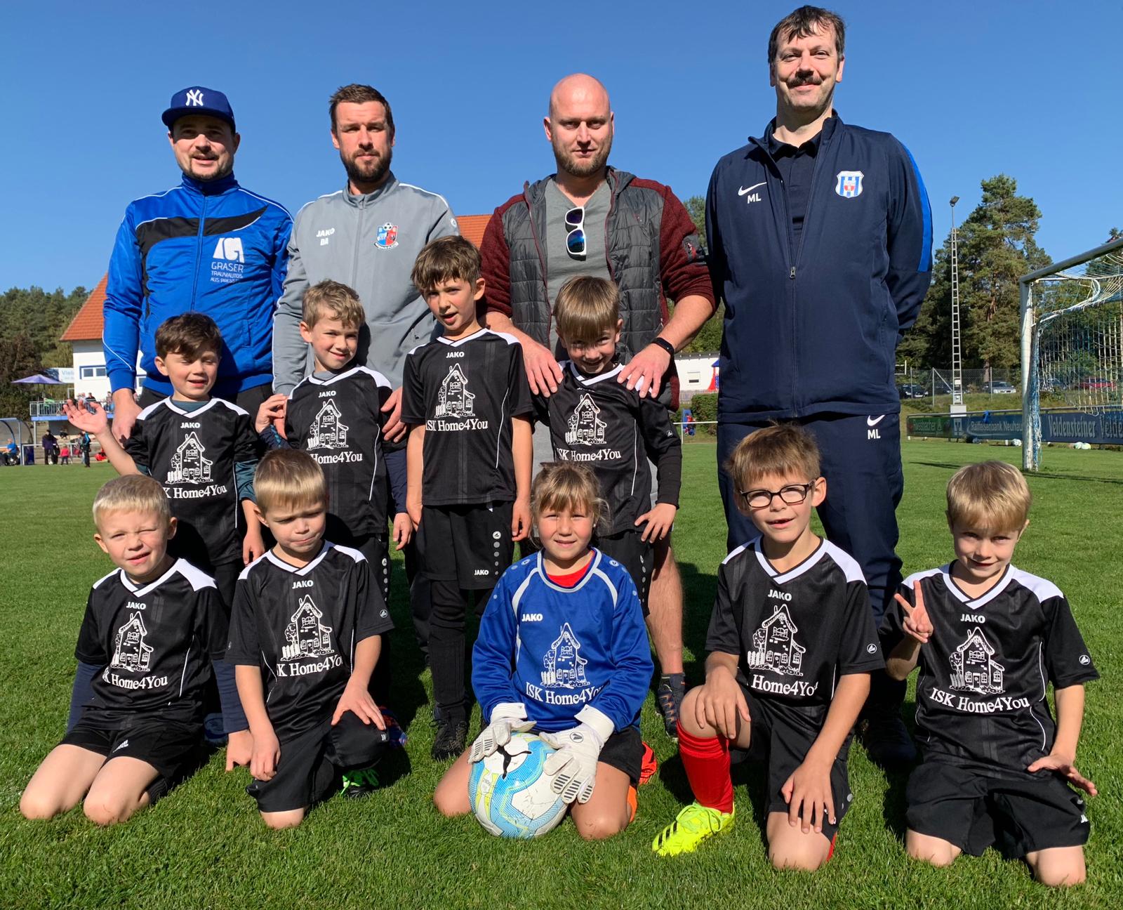 Das U07/G2-Team der (SG) SV Plech mit ihrem Trainer-/Betreuerteam. In der hinteren Reihe von rechts nach links, Trainer Thorsten LUBER und Betreuer Matthias DEUERLEIN
