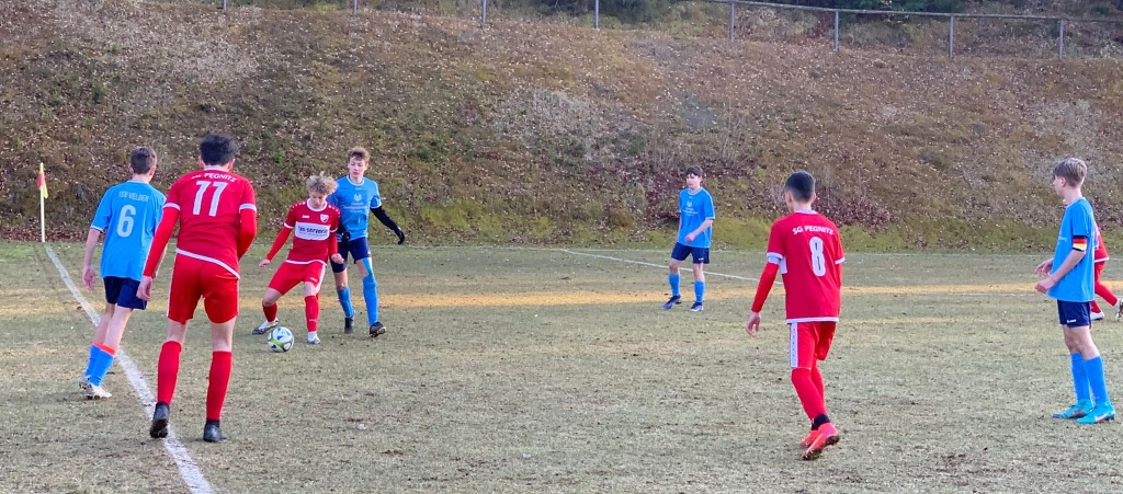 Am letzten Spieltag der Herbstrunde empfing die U15C1 in Rupprechtstegen die zweite Mannschaft der 48er aus Erlangen. Von Anfang an entwickelte sich dabei eine von beiden Seiten offen geführte Partie. Hierbei war es unsere Mannschaft, die in der Offensive gute Akzente setzen konnte. Aus dieser Druckphase heraus konnten L. Hofmann und L. Ölmann in den Spielminuten 11 und 18 eine verdiente 2:0-Führung erzielen. Nach dem Seitenwechsel konnten die Veldener die Gäste früh im Spielaufbau stören und zeigten im eigenen Ballbesitz gute Kombinationen. Mit einem Doppelschlag durch L. Castillo und L. Hofmann (38. und 45. Minute) konnte die eigene Führung ausgebaut werden. Danach ließ man den Gästen etwas zu viel Raum und diese kamen somit immer besser ins Spiel. Die logische Konsequenz war dann der Treffer zum 1:4 in der 58. Minute, aber L. Hofmann konnte nur vier Minuten später mit seinem dritten Treffer den alten 4-Tore-Abstand wieder herstellen. Lediglich eine turbulente Schlussphase, bei der die Gäste kurz hintereinander zwei weitere Treffer (65. und 68. Minute) erzielen konnten, legte einen kleinen Schatten über die ansonsten sehr geschlossene und gute Mannschaftsleistung.